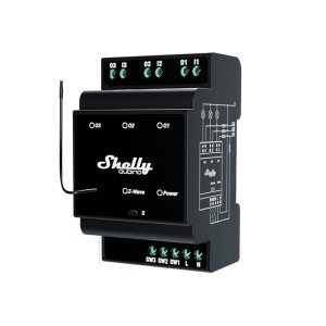 The Shelly Qubino Wave Pro 2PM is a DIN-rail mountable smart switch with built-in power metering. It features two outputs, each rated at 16A (25A maximum), and consumes less than 0.3W of power, making it ideal for controlling and automating appliances like lighting and electronics while easily monitoring and optimizing energy usage. This device is compatible with Z-Wave® certified gateways and works with over 4,000 Z-Wave devices.