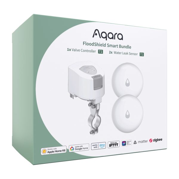 Protect your home with the Aqara Flood Shield Smart Bundle. Includes a smart valve controller and two water leak sensors for automatic leak detection and shutoff. Easy installation, wide compatibility, and seamless smart home integration. Buy now!