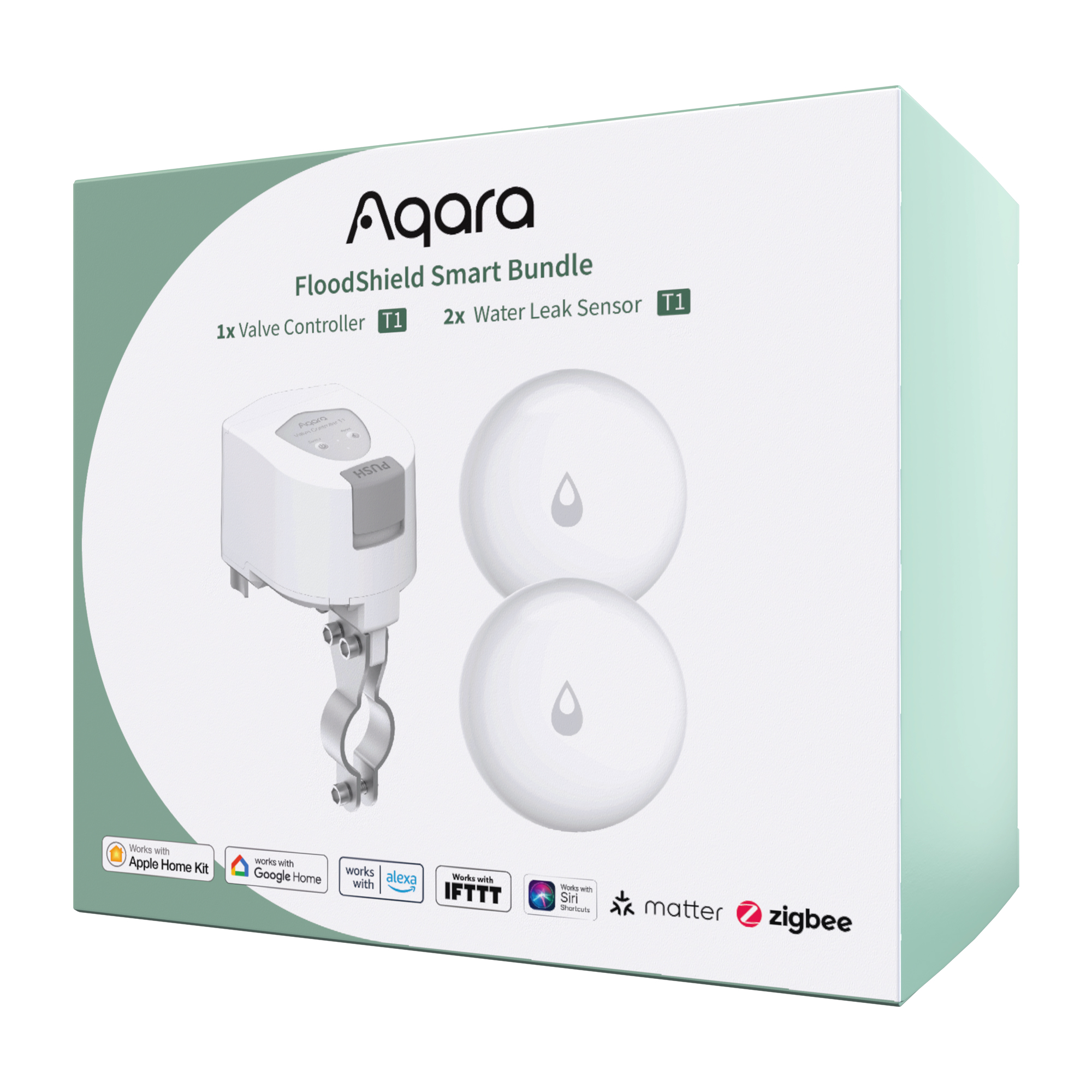 Protect your home with the Aqara Flood Shield Smart Bundle. Includes a smart valve controller and two water leak sensors for automatic leak detection and shutoff. Easy installation, wide compatibility, and seamless smart home integration. Buy now!
