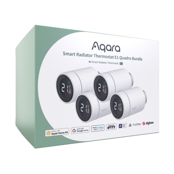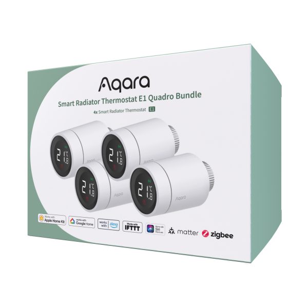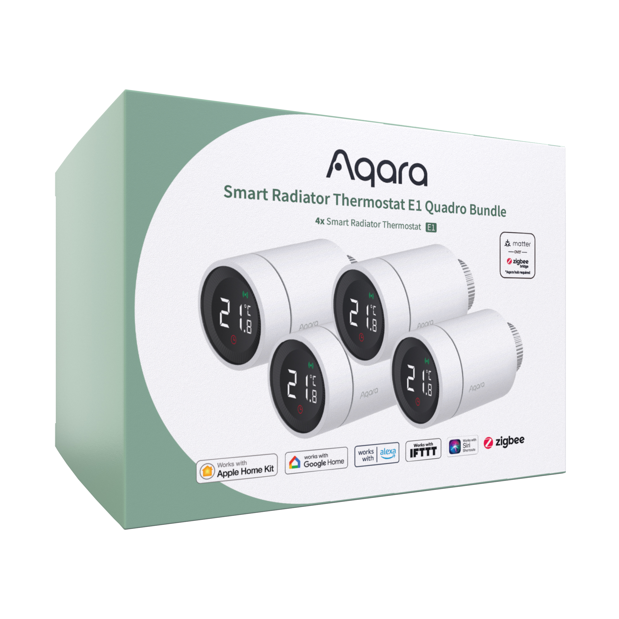 This bundle included 4 Aqara Radiator Thermostat E1. The Radiator Thermostat that can be used with the majority of water radiators* such as space heaters, towel warmers or even warm floors. Takes the readings from external Aqara sensors and adjusts the heating power according to them.