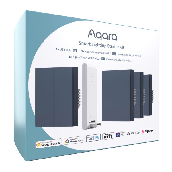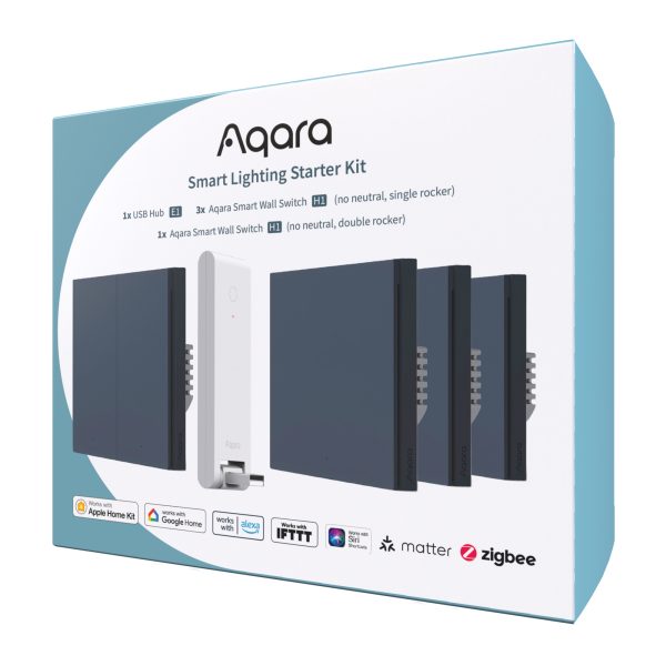 Illuminate your smart home journey with the Aqara Smart Lighting Starter Kit. This comprehensive kit, featuring 3 Aqara Smart Wall Switch H1 Single Rockers, 1 Aqara Smart Wall Switch H1 Double Rocker, and the Aqara Hub E1, sets the stage for a connected and intelligent living space. Seamlessly compatible with popular voice assistants and ecosystems like HomeKit, Alexa, Google, and IFTTT, this Zigbee 3.0-enabled kit ensures fast, stable, and energy-efficient smart home connectivity.
