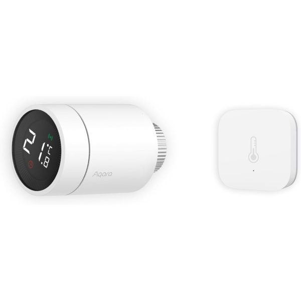 Experience precision and energy-efficient heating with the Aqara Smart Radiator Thermostat E1 & Temperature and Humidity Sensor T1 Bundle; includes one Aqara Radiator Thermostats E1 and one Aqara Temperature and Humidity Sensor T1. Achieve room-wide temperature control with real-time readings from the included sensor and integrate it seamlessly into your smart ecosystem. Enjoy geofencing, energy-saving features, and device grouping support, ensuring comfort and savings. Note: Aqara Zigbee 3.0 Hub required for operation.