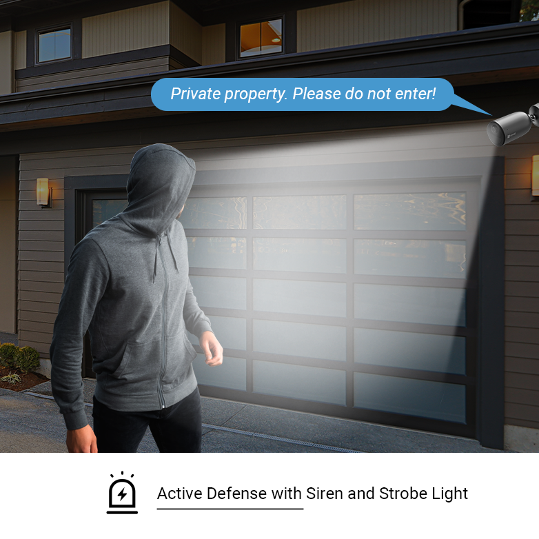 Active Defence – Once the camera detects a person-shape, the EB3 will automatically set off a siren and flash two spotlights to let them know they have been detected. Deter suspicious behaviour and secure your home with this fantastic guardian and features.