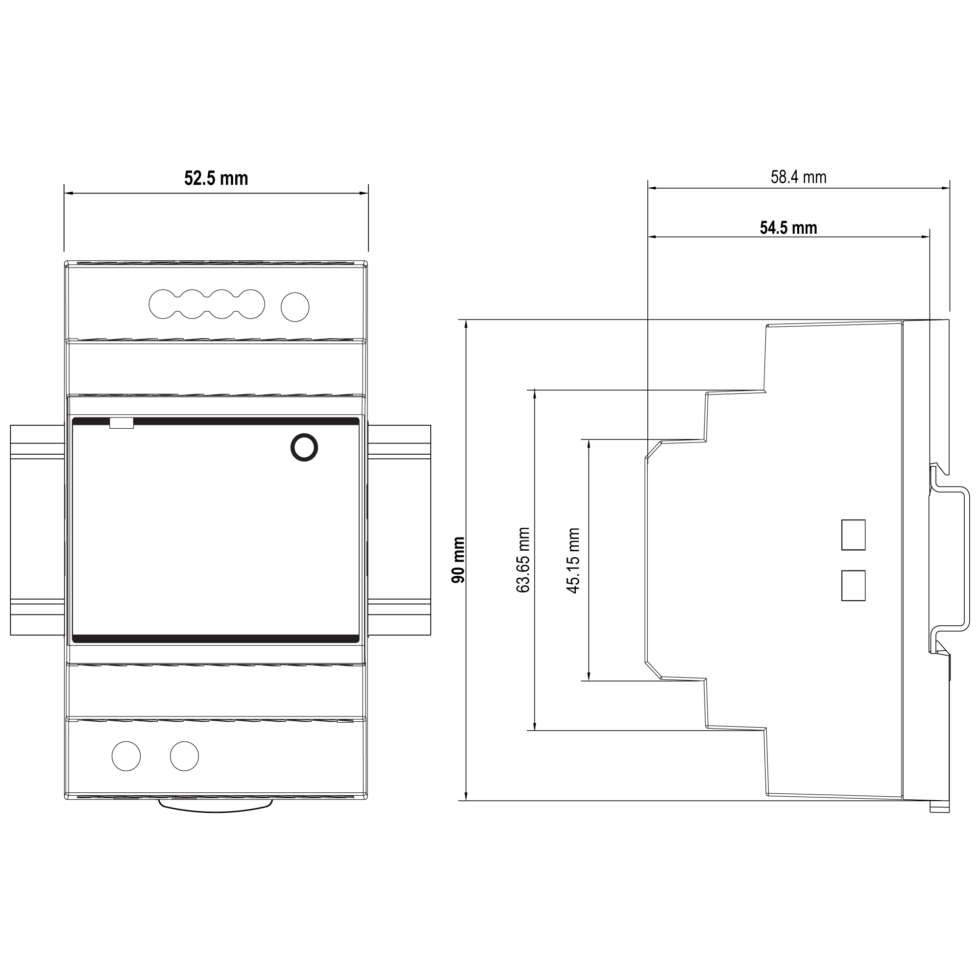 Ultra-slim DIN rail PSU. 12VDC output, 4.5A rated current output, 54W rated power output.