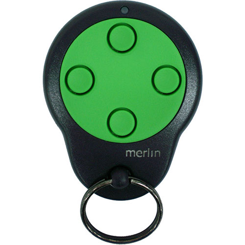 Merlin branded 433.92 MHz 4 button remote control. Compatible with all 433 MHz garage door openers fitted with Merlin M-530 or M-532 code hopping receiver boards.