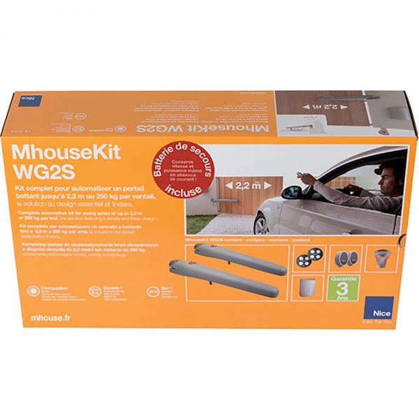 The MHouse WG2S is a 24v ram type double kit designed for automation of residential swing gates.