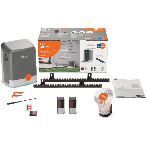 NiceHome Filo 400 installer friendly 24v sliding gate opener kit, for use with sliding gates up to 5.5m in length and 400kg in weight.